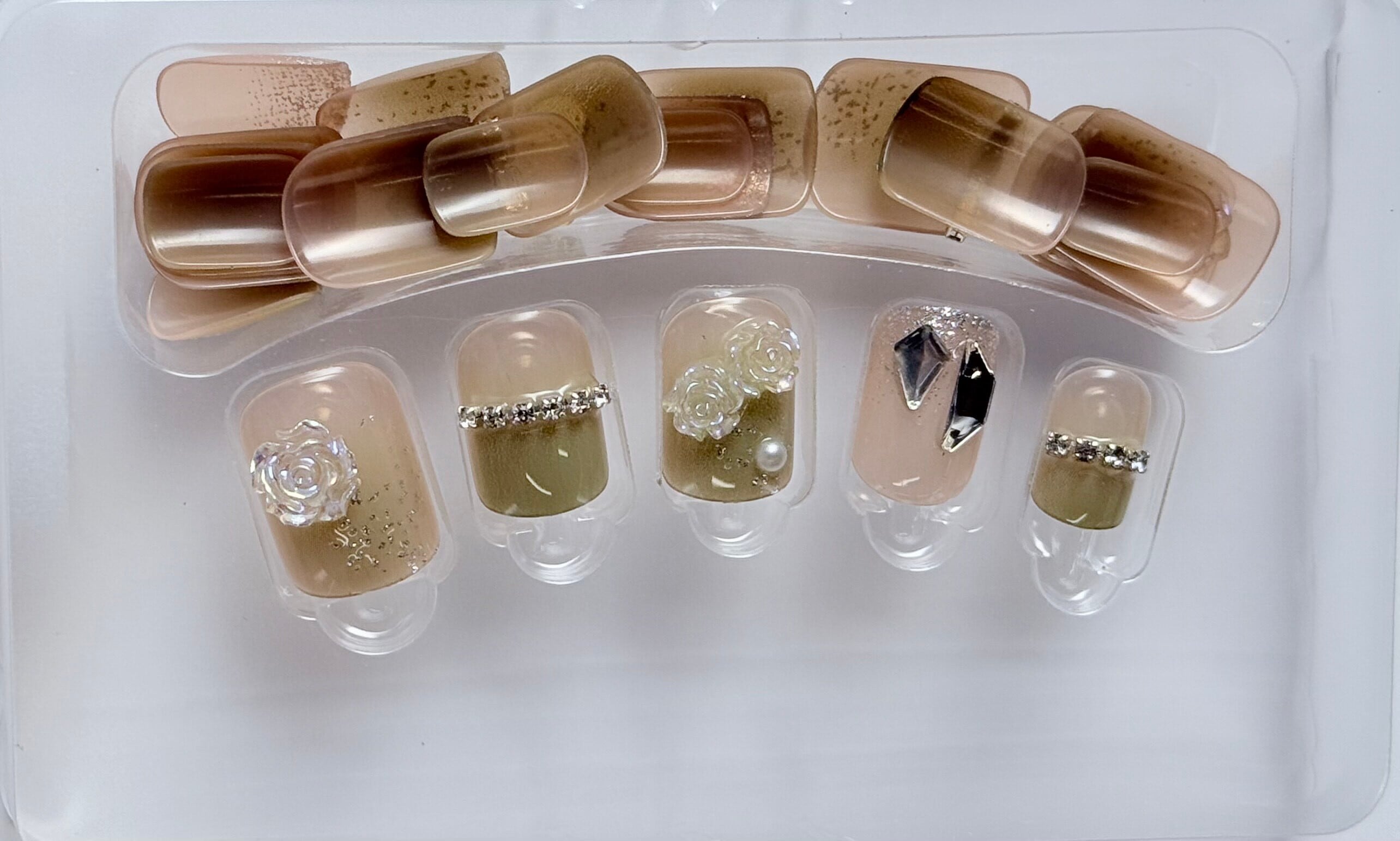 華やかで個性的なデザインが楽しめるネイルチップ green/pinkは、あなたの指先を華やかに彩る素敵なアイテムです。鮮やかなグリーンとピンクの組み合わせが、どんなシーンでもあなたの魅力を引き立て、特別な日にも日常使いにもぴったりの選択です。手軽に装着できるため、忙しい日常の中でも簡単にネイルを楽しむことができます。