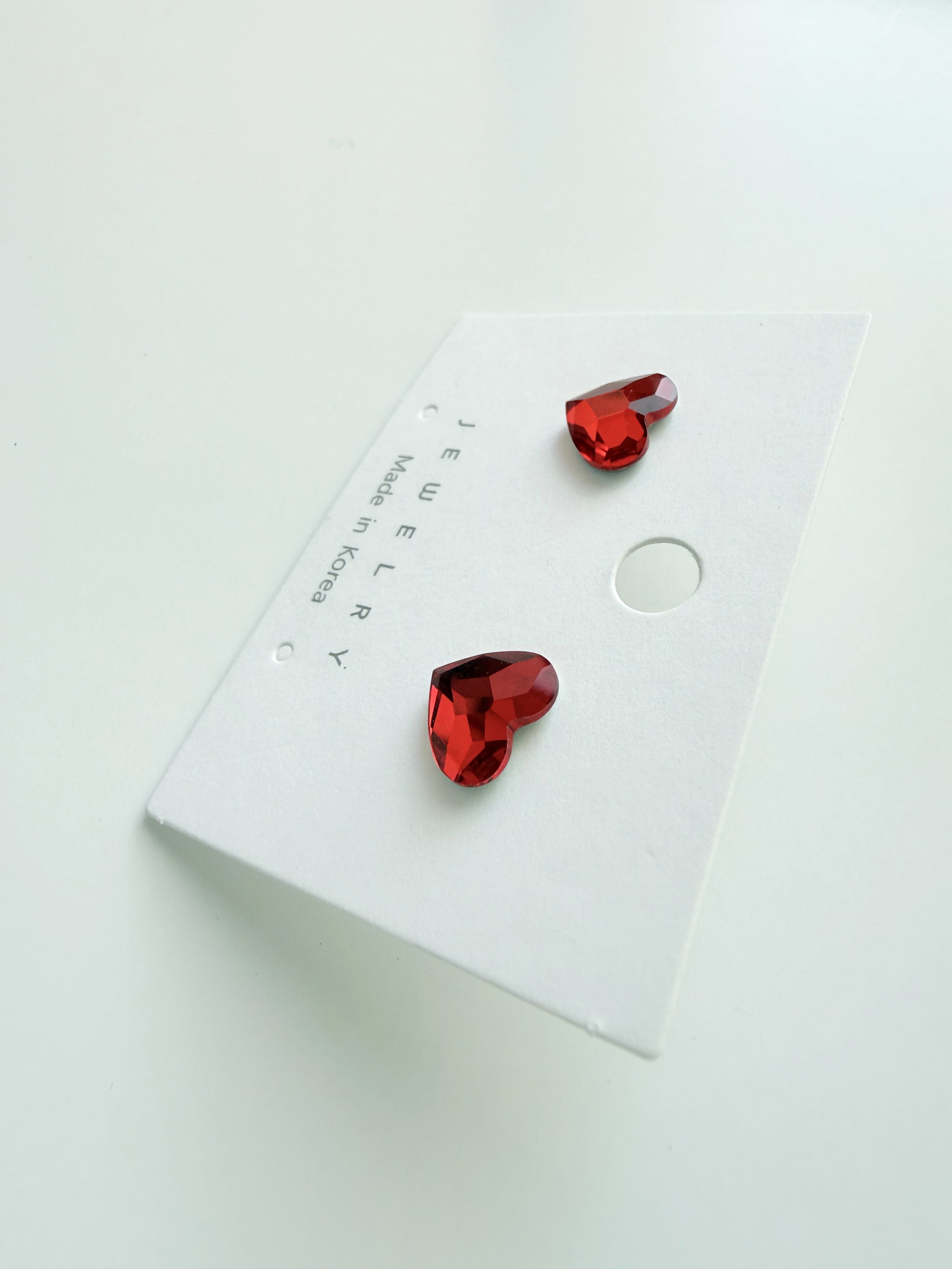 上品な輝きが耳元を彩る、ハートモチーフのレッド系ピアスです。