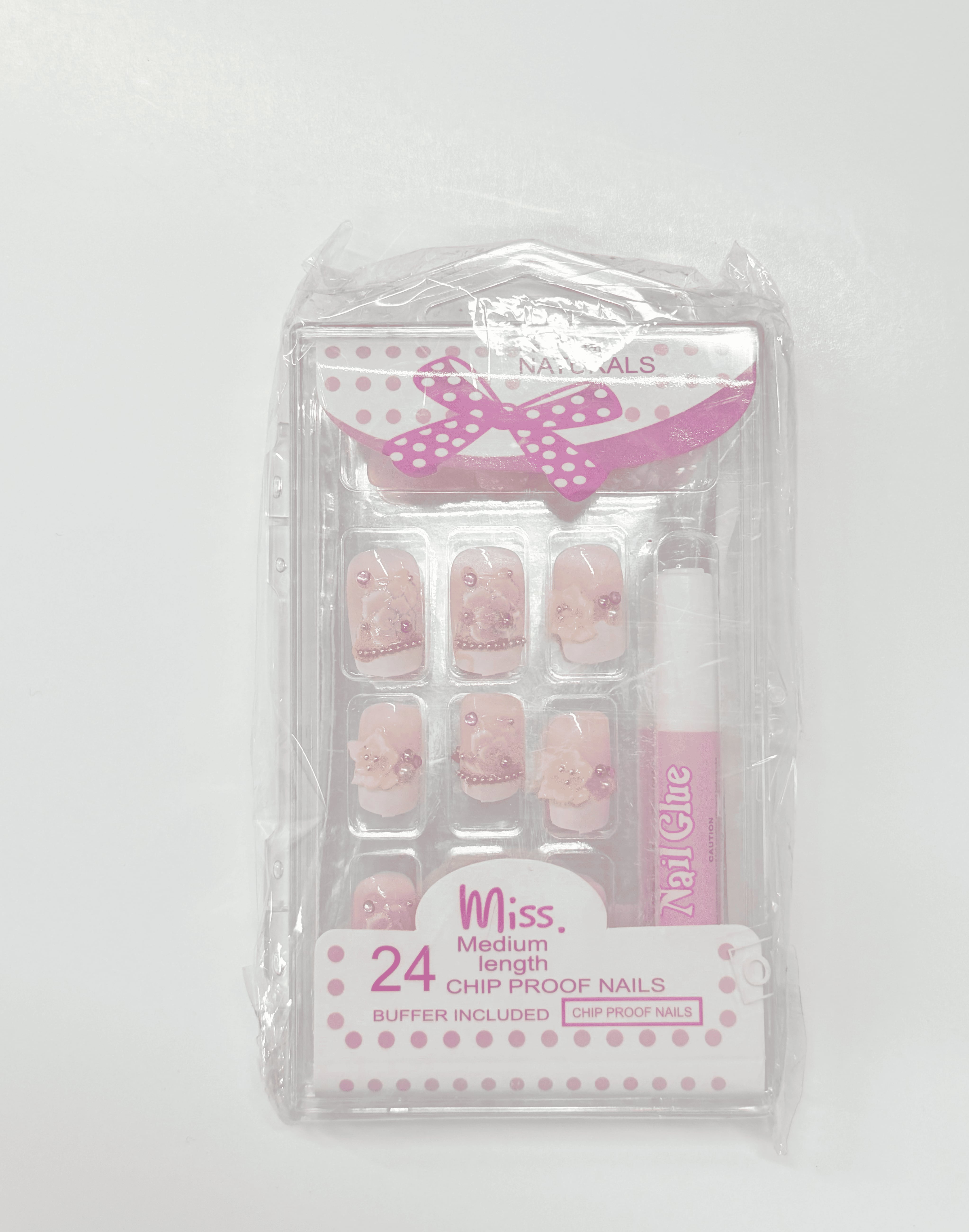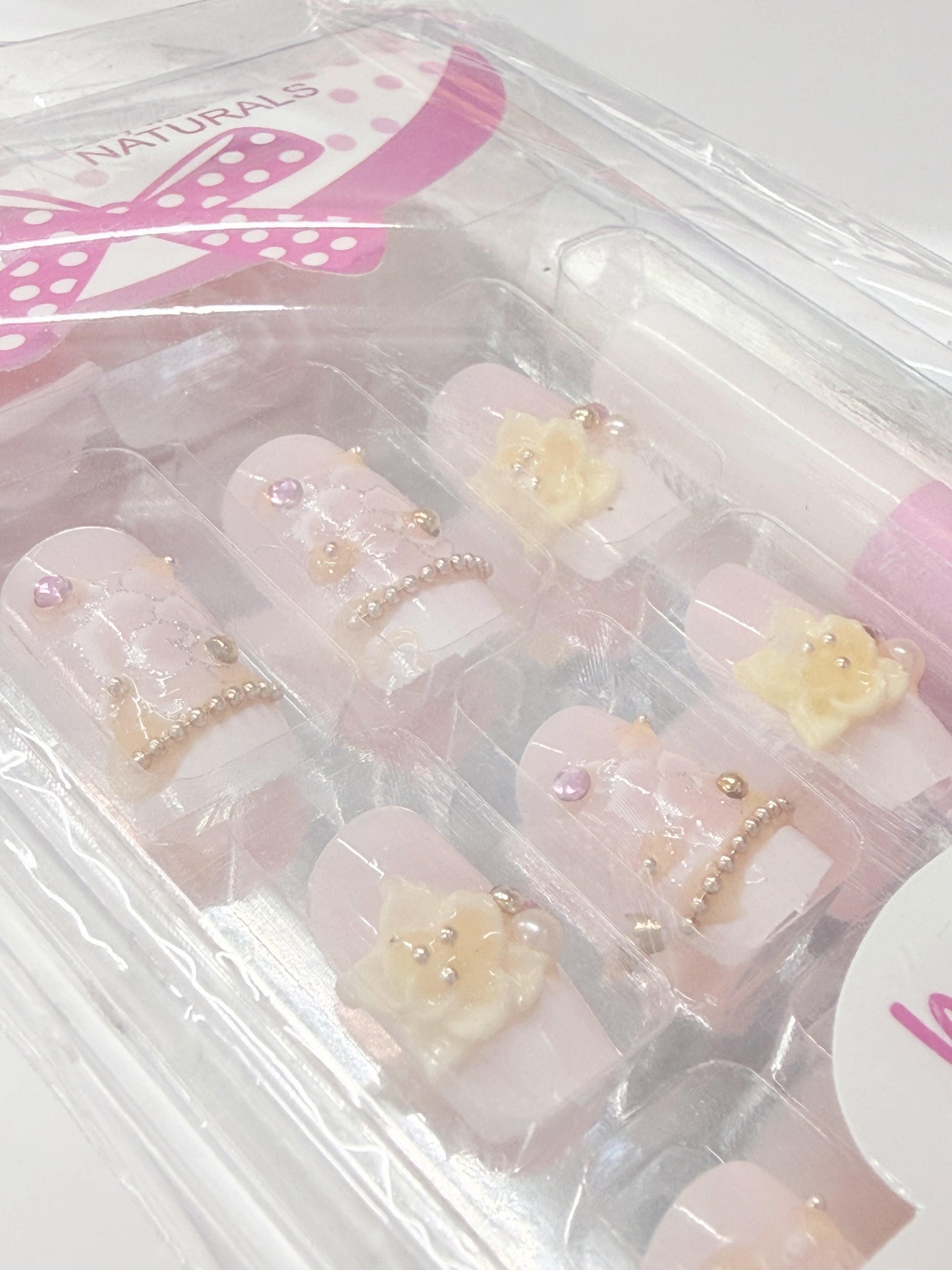 [kr-017]韓国ネイルチップ 24枚セット フラワー×フレンチデザイン ピンク系 花 パール ストーン フェミニン つけ爪 セルフネイル